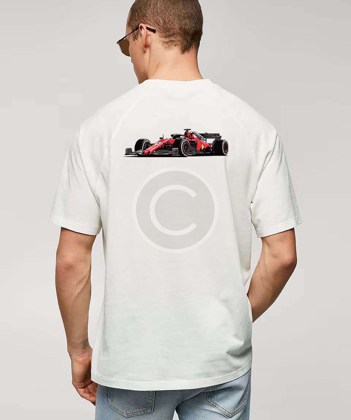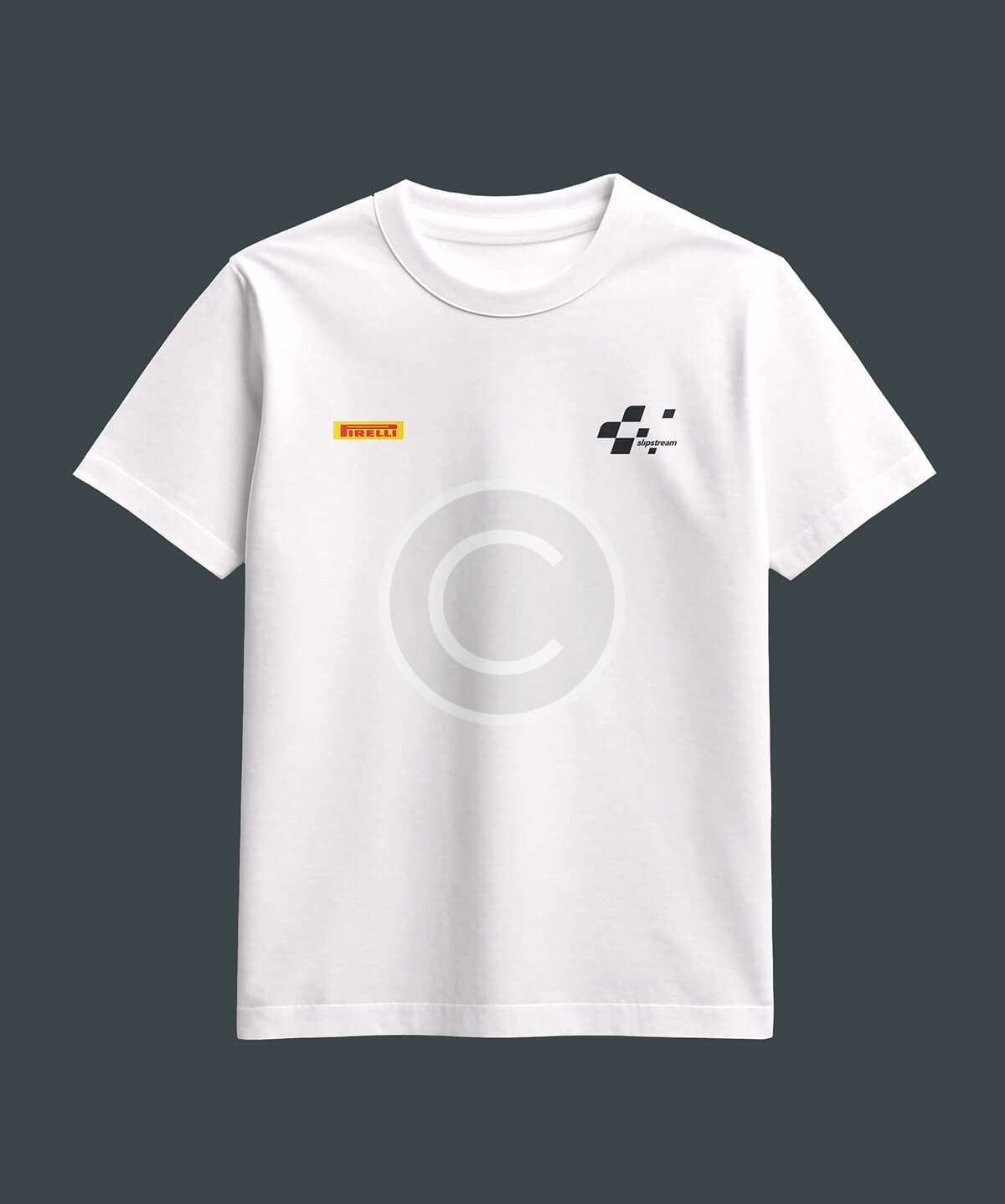 A sleek white t-shirt with minimalistic race logos—clean, comfortable, and perfect for subtle motorsport flair.